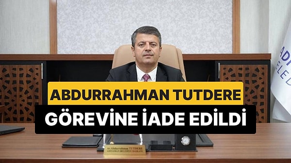 İçişleri Bakanlığı, Adıyaman Belediye Başkanı Abdurrahman Tutdere'nin görevine iade edildiğini açıkladı. CHP'li başkan Tutdere, 5 Temmuz 2025 tarihinde Adıyaman, Adana, Antalya başkanlarıyla birlikte gözaltına alınmıştı.