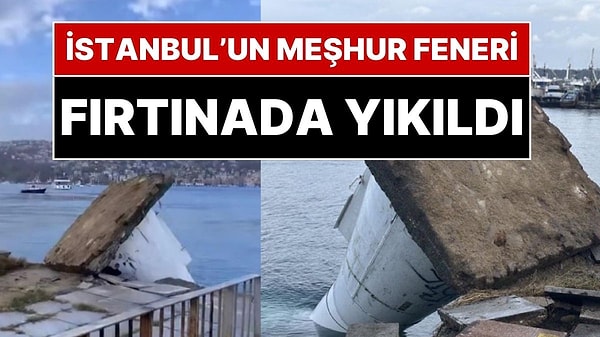 Marmara'da etkili olan ve saatteki hızı 80 kilometreyi bulan fırtına nedeniyle Sarıyer Kireçburnu sahil bölgesinde bulunan deniz feneri denize doğru devrildi.