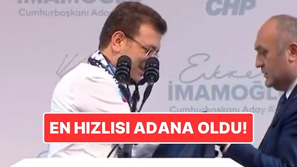 İBB Başkanı Ekrem İmamoğlu, İzmir’de başlattığı Cumhurbaşkanlığı adaylık kampanyası için bugün Adana’ya gitti. Adana Büyükşehir Belediye Başkanı Zeydan Karalar ve Mersin Büyükşehir Belediye Başkanı Vahap Seçer ile birlikte salona giren ve partilileri selamlayan Ekrem İmamoğlu, CHP’lilerin “ceketini çıkar” talebini de kırmadı. İmamoğlu, “Şimdiye kadar en hızlısı Adana oldu” ifadelerini kullandı.