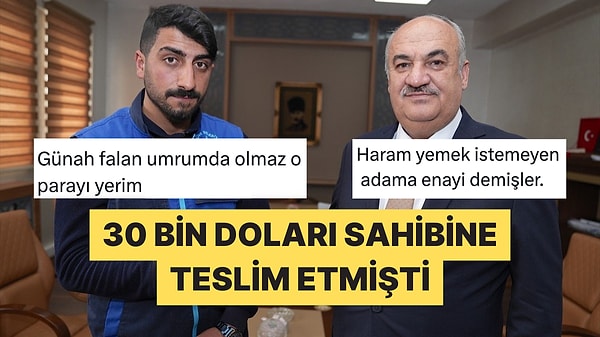 Geçtiğimiz günlerde Erzurum'da bir temizlik görevlisi çöpte bulduğu 30 bin doları sahibine teslim etmişti. Onur Deligöz Aziziye'de bir çöplüğün yanında kar altında kalan çantayı içindeki numarayı arayarak sahibine ulaştırdı. Aziziye Belediye Başkanı Emrullah Akpunar ise temizlik görevlisini makamında ağırlayarak bir maaş ikramiye ve çeyrek altın hediye etti.