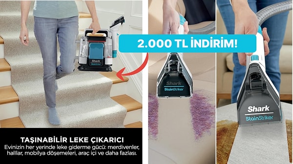 Shark StainStriker Pet Başlıklı, Koltuk Yıkama ve Leke Çıkarma Makinesi Türkiye'ye geldiğinden beri en çok sevilen yıkama makineleri arasına girdi. Güçlü performansıyla kullananların gönüllerini feth eden Shark StainStriker Pet Başlıklı, Koltuk Yıkama ve Leke Çıkarma Makinesi şimdi Amazon Fırsatları indiriminde.