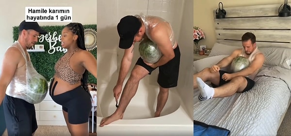 Hamile kadınlara saygımız büyük 😂 Hamile eşlerini anlamaya çalışan erkeklerin, karınlarına karpuz bağlayarak birbirinden komik hallere girdiği videolar sosyal medyada viral olmaya devam ediyor.