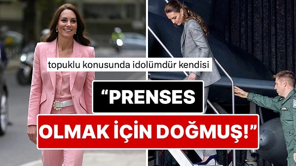 Galler Prensesi Kate Middleton, son olarak, 2 Ekim günü RAF Coningsby üssüne yaptığı ziyarette, yüksek topuklu ayakkabılarıyla merdivenleri geri geri inerek sosyal medyada büyük ilgi topladı.