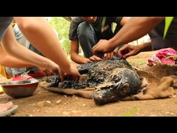 Hindistan’da sıcak katran çukuruna düşen bir köpek, hayvanseverler tarafından özenle temizlenerek kurtarıldı.