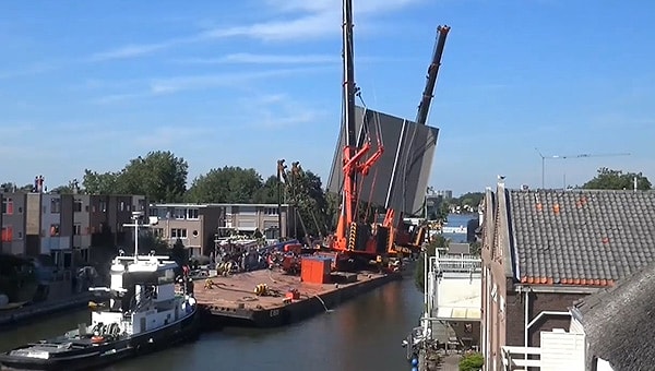 Hollanda’nın Alphen aan den Rijn şehrinde meydana gelen olayda, restore edilen bir köprünün parçalarını taşıyan iki dev vinç evlerin üzerine devrildi. İlk belirlemelere göre 20 kişinin yaralandı.