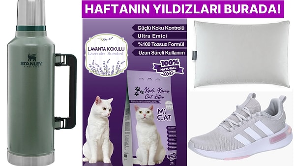 Bakalım bu hafta en çok satılan ürünler hangileri olmuş? Stanley termostan kedi kumuna, Roborock Q5 robot süpürgeden Karaca kahve makinesine. Listemiz dolu dolu. Karşınızda online alışverişte bu haftanın en çok satan ürünleri. Bizden söylemesi bu ürünlere bakmadan bu haftanın alışverişini tamamlamayın.