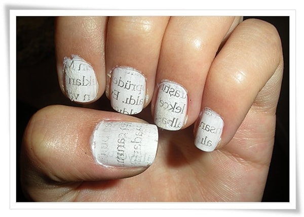 Burada biz sizlere gazete ile tırnak sanatı yapmayı anlattık. Zevkinize ve hayal gücünüze göre ilginç tasarımlar yapmak, mükemmel sanat eserleri çıkarmak sizin elinizde.