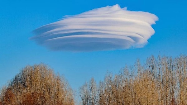 Van semalarında beliren ve saatlerce aynı noktada dairesel şekil değiştirerek görülen mercek bulutu ilginç görüntü oluşturdu.