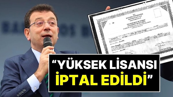 İddiaya göre; İstanbul Üniversitesi Sosyal Bilimler Enstitüsü Müdürlüğü, İmamoğlu’nun, “lisans mezuniyet” koşulunun sağlanamadığından bahisle “yüksek lisans mezuniyetinin ve diplomasının geçersiz sayılmasına” karar verdi.